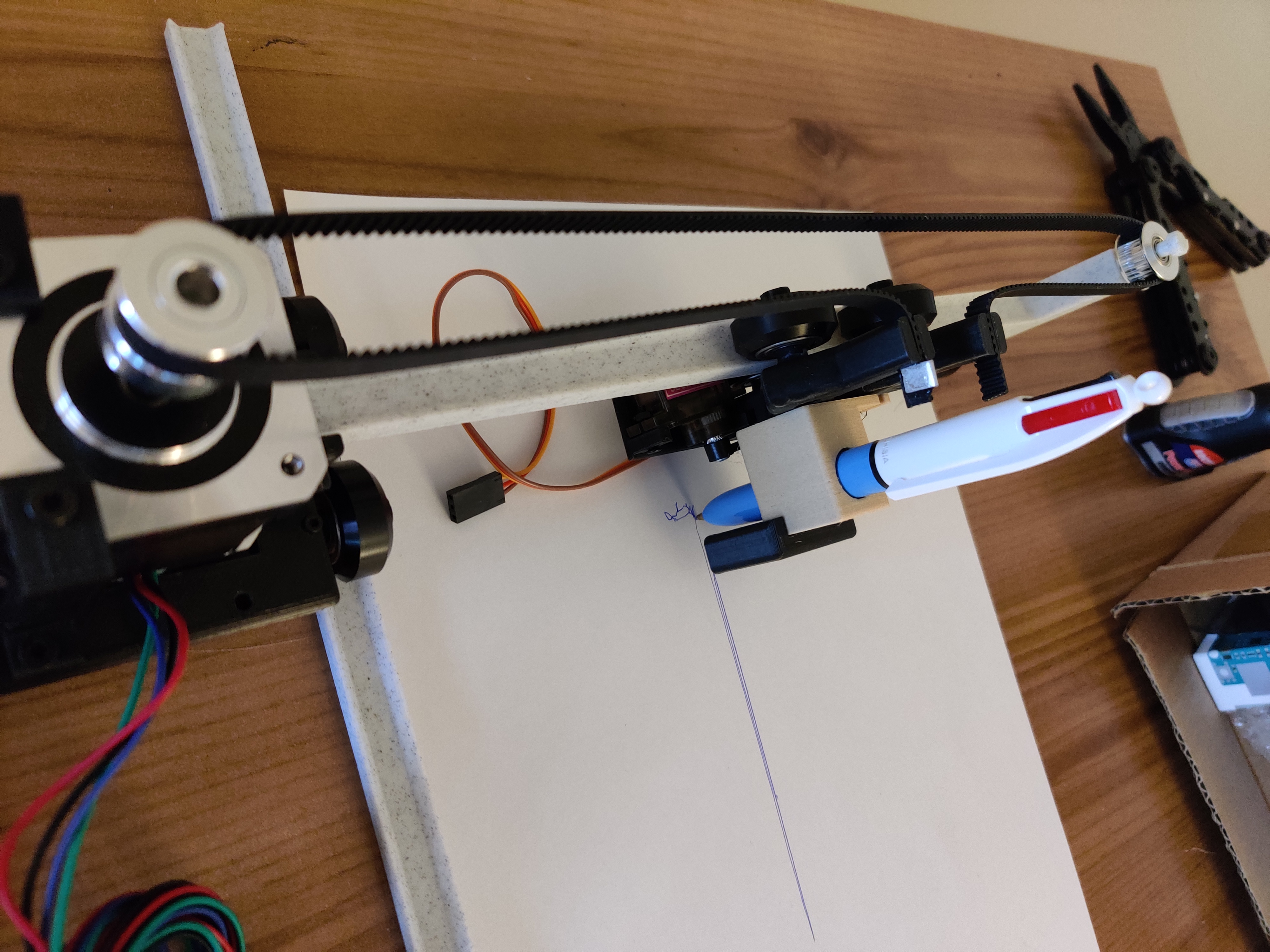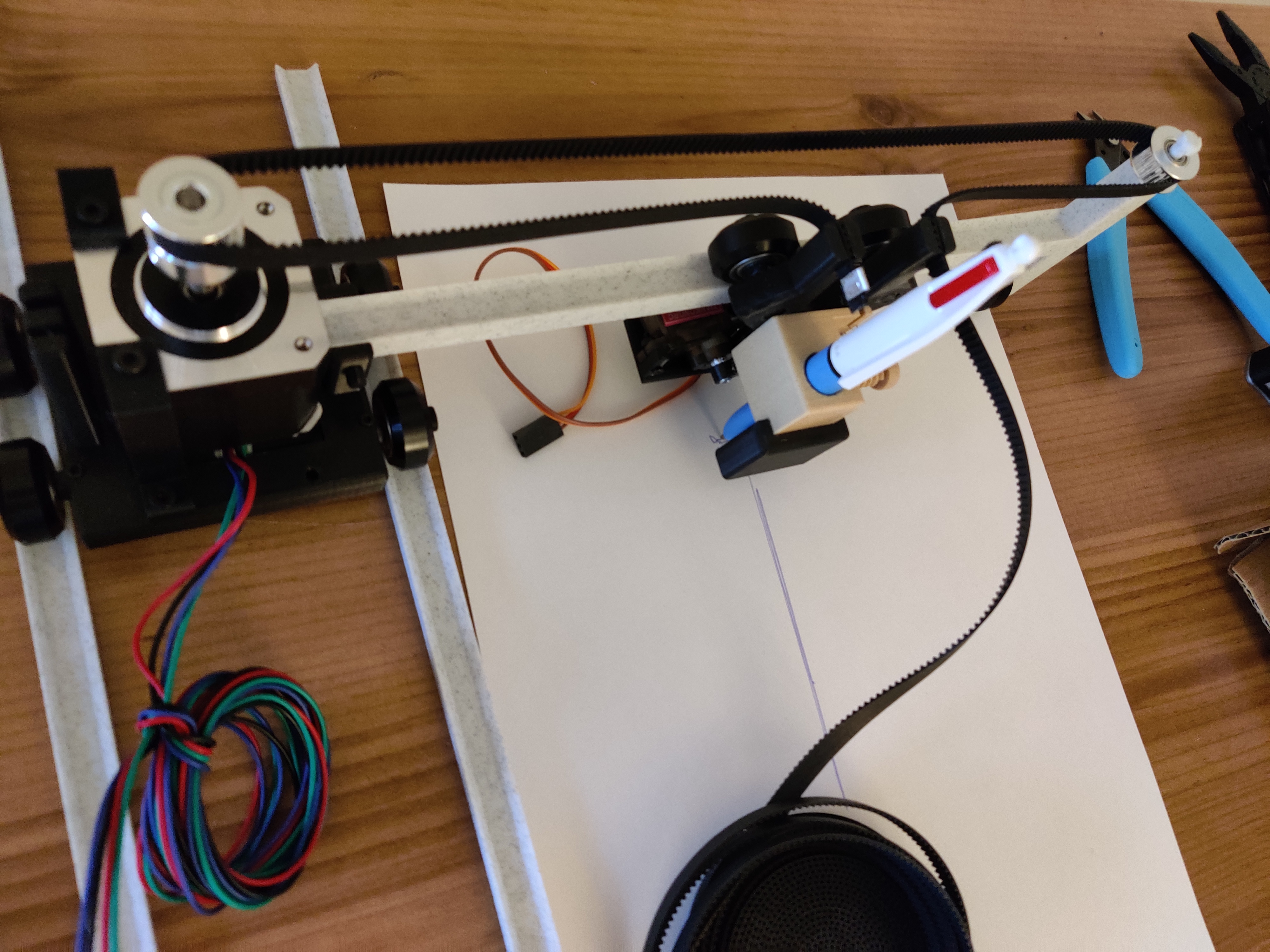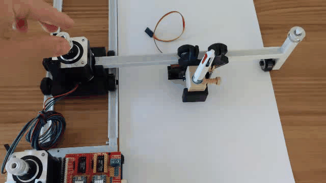 The machine is now assembled. We can start checking that we can control the motors and send him a .gcode. Gcode contains the commands to send to the motors and the servo to draw something.