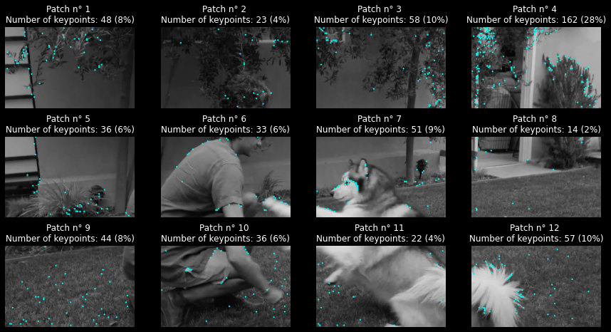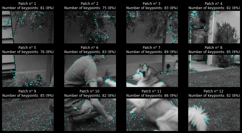 In the following example, the thresholds have been initialized to 15, then each threshold increases/decreases if its dedicated cell has too many/too few keypoints.