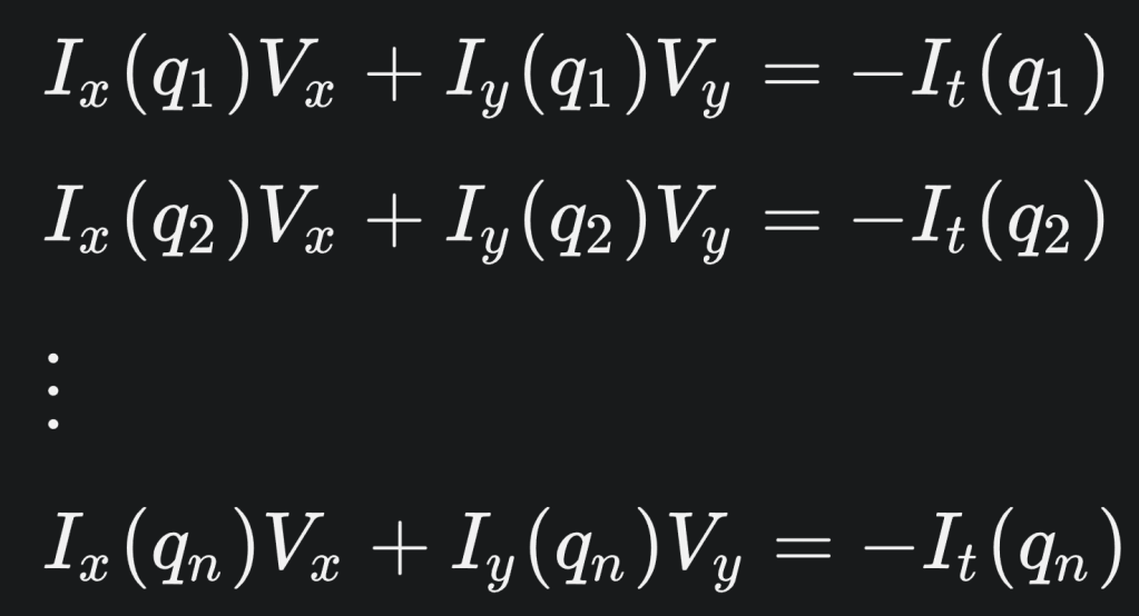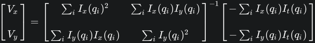 - the objectif is to find the matrix V which handles the velocity for each pixel. This matrix must satisfy: