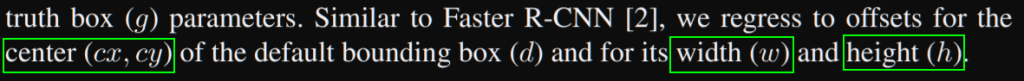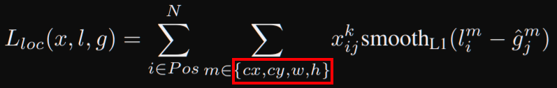 - Lloc is a smooth L1 between predicted box and the ground truth (for center cx,cy and width/height)