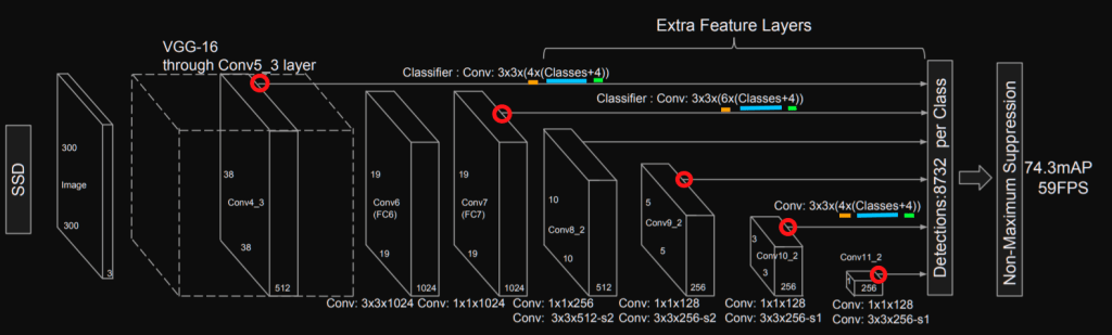- Multi-scale feature maps: layers that decrease in size progressively (for multi-scale detection)