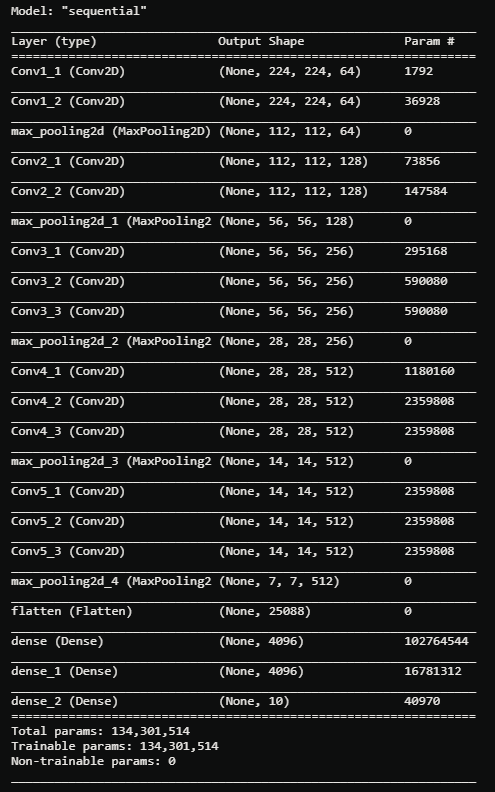 VGG16 has the following architecture: