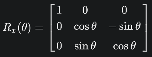 As our robot is the origin of our referential and do a pure rotation around the x axis, we only need to rotate the projection around the x axis. To do so, we need to multiply the 3D point (px, py, pz) with a rotation matrix :