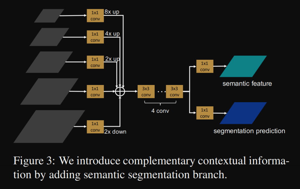 The semantic segmentation branch S is constructed based on the output of the Feature Pyramid: