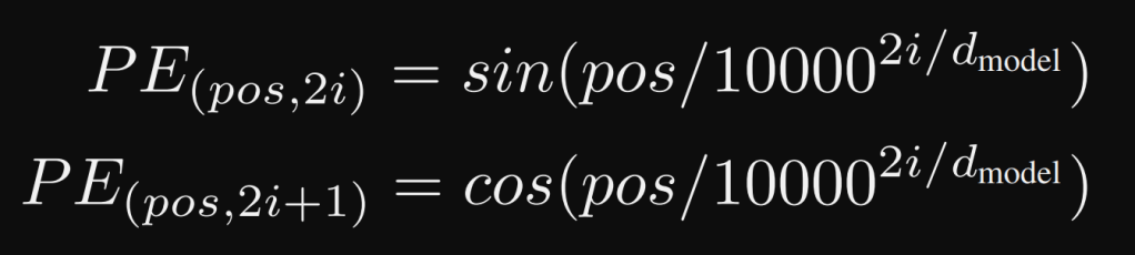 where pos is the position and i the dimension. Learned positional embeddings where also tried and give similar results. This article explains why sin and cos are used.