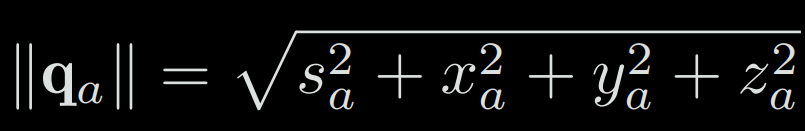 The length of a quaternion is defined as: