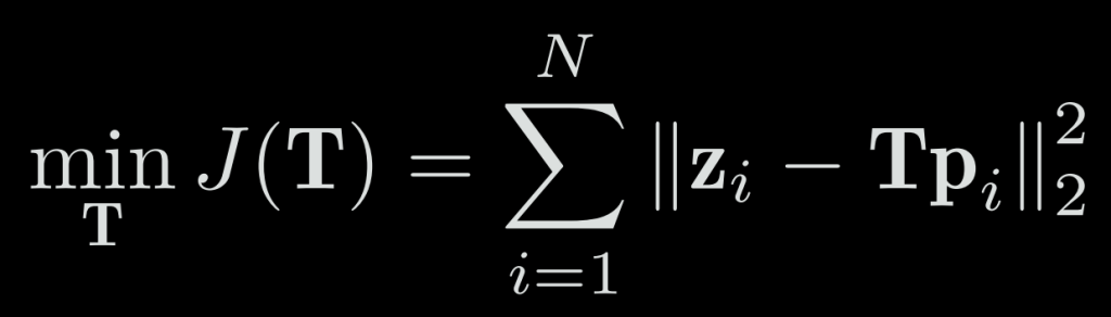 Suppose we have N points in total, then we find a best T to make the error minimized: