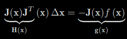 - For k-th iteration, we find an incremental value of ∆xk, such that the object function norm2(kf(xk + ∆xk)k) reaches a smaller value