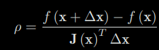 So how to determine the scope of this trust-region? A good method is to determine it based on the difference between our approximate model and the real object function: if the difference is small, it means that the approximation is good, and we may expand the trust-region; conversely, if the difference is large, we will reduce the range of approximation. We define an indicator ρ to describe the degree of approximation:
