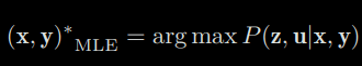 Please note that the denominator part of Bayes’ rule has nothing to do with the state x, y to be estimated, so it can be just ignored. Bayes’ rule tells us that solving the maximum posterior probability is equivalent to the estimate the product of maximum likelihood and a priori. Further, we can also say, “I’m sorry, I don’t know in prior where the robot pose or the map points are”, then there is no prior. In this case, we can solve the Maximize Likelihood Estimation (MLE):