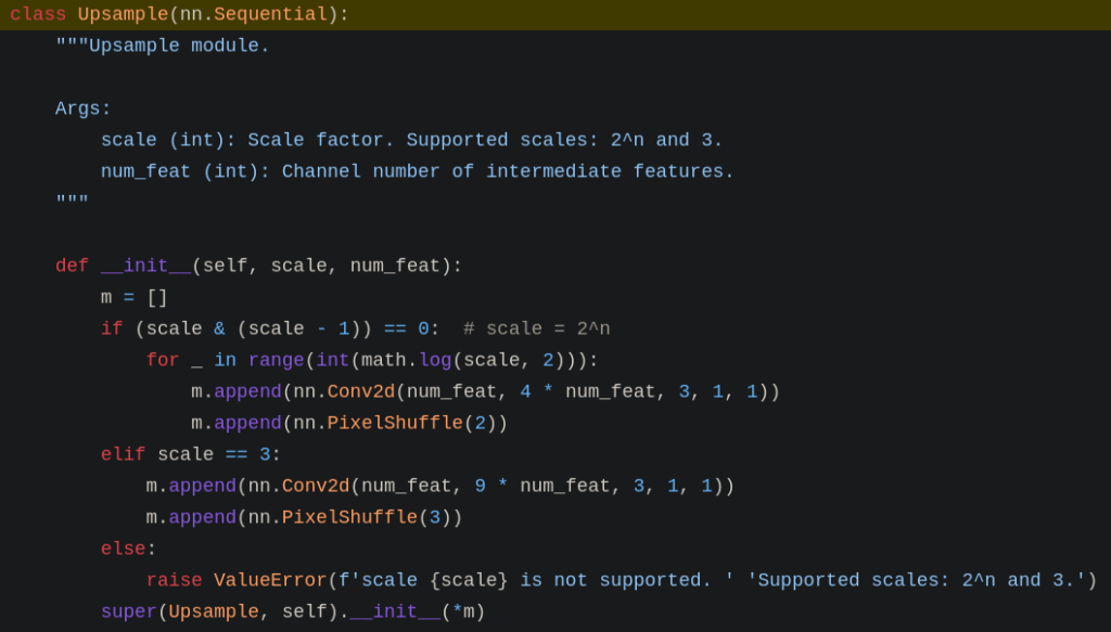 For the classical Super-Resolution, the implementation is LeakyReLU(Conv2d) -> Upsample -> Conv2D: