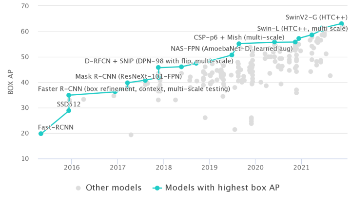 The aim of this article is to give a state of the art of object detection evaluated on COCO and classified by architecture type. Then, the transformers will be explained starting from the NLP domain to their adaptation to the computer vision domain with the Swin Transformers and the Focal Transformers. The methods presented in the SwinV2-G paper to adapt the Swin Transformer to a 3 billion parameters model will also be explained.